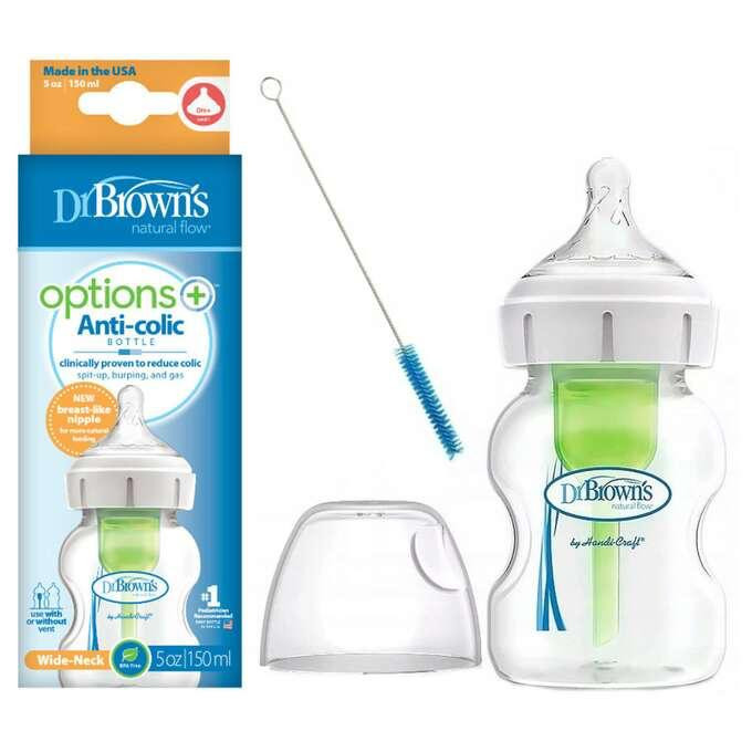 شیشه شیر طلقی پهن 150 میل آپشن پلاس دکتر براون Drbrown’s