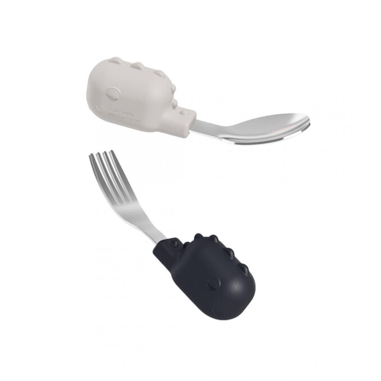 - طراحی دسته کوچک به شکل دایناسور که باعث جلب توجه کودک به غذا خوردن می شود. ست قاشق و چنگال هی اور شی Heorshe مناسب دستان کوچک کودک است . هر بسته محتوی یک قاشق و چنگال است.