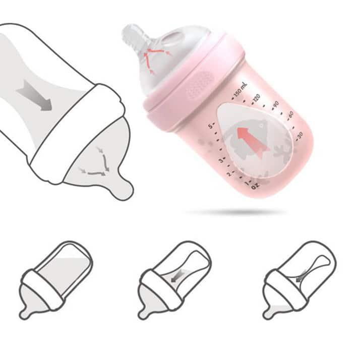 داخل بدنه این شیشه شیر، یک استوانه سیلیکونی نرم قرار دارد که سبب می شود هنگام مکیدن شیر توسط نوزاد، این استوانه فشرده شود و از نفخ و کولیک به طور کامل جلوگیری نماید.طرح اقیانوسی این سیلیکون آن را جذاب تر و زیبایی این محصول را بیشتر کرده است.