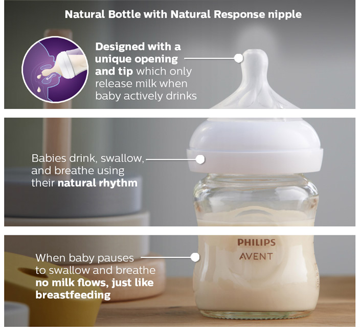 وقتی بچه مکث در مکیدن می کند برای تنفس یا قورت دادن شیر در ریسپانس شیر جاری نمی شود مثل سینه