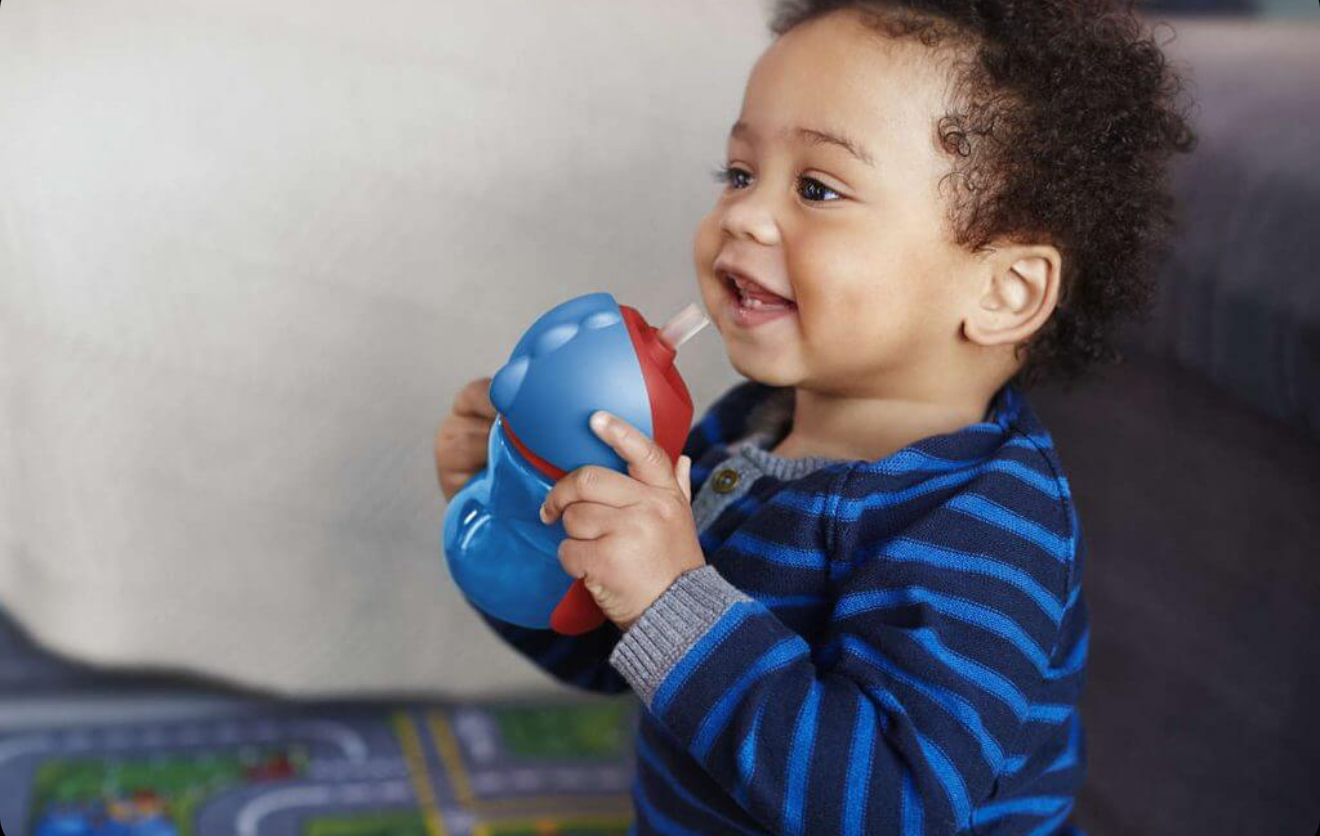 در این لیوان اونت از یک نی بلند و خمیده استفاده شده و به کودک اجازه میدهد تا اخرین قطره آب را بنوشد.